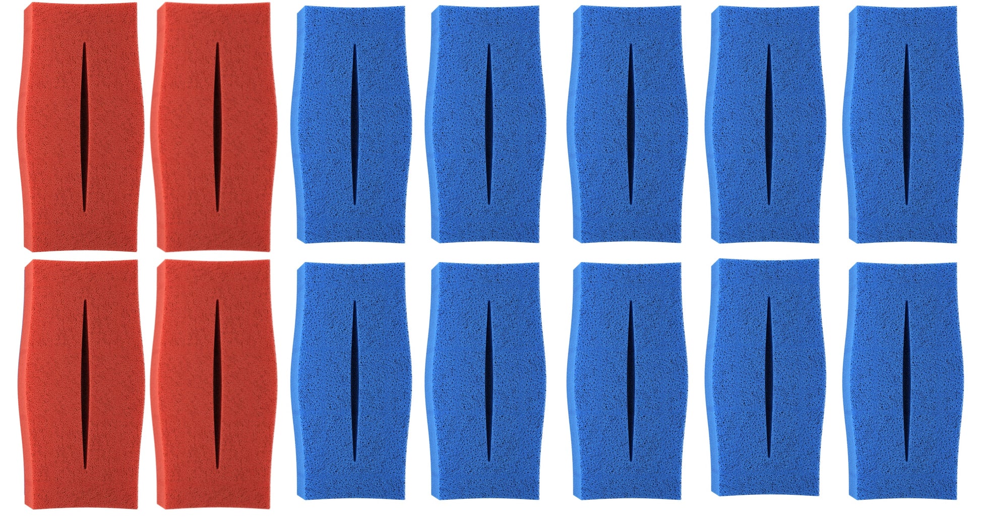 Material: langlebiger, formstabiler FilterschaumFarbe: Blau (grob), Rot (fein)