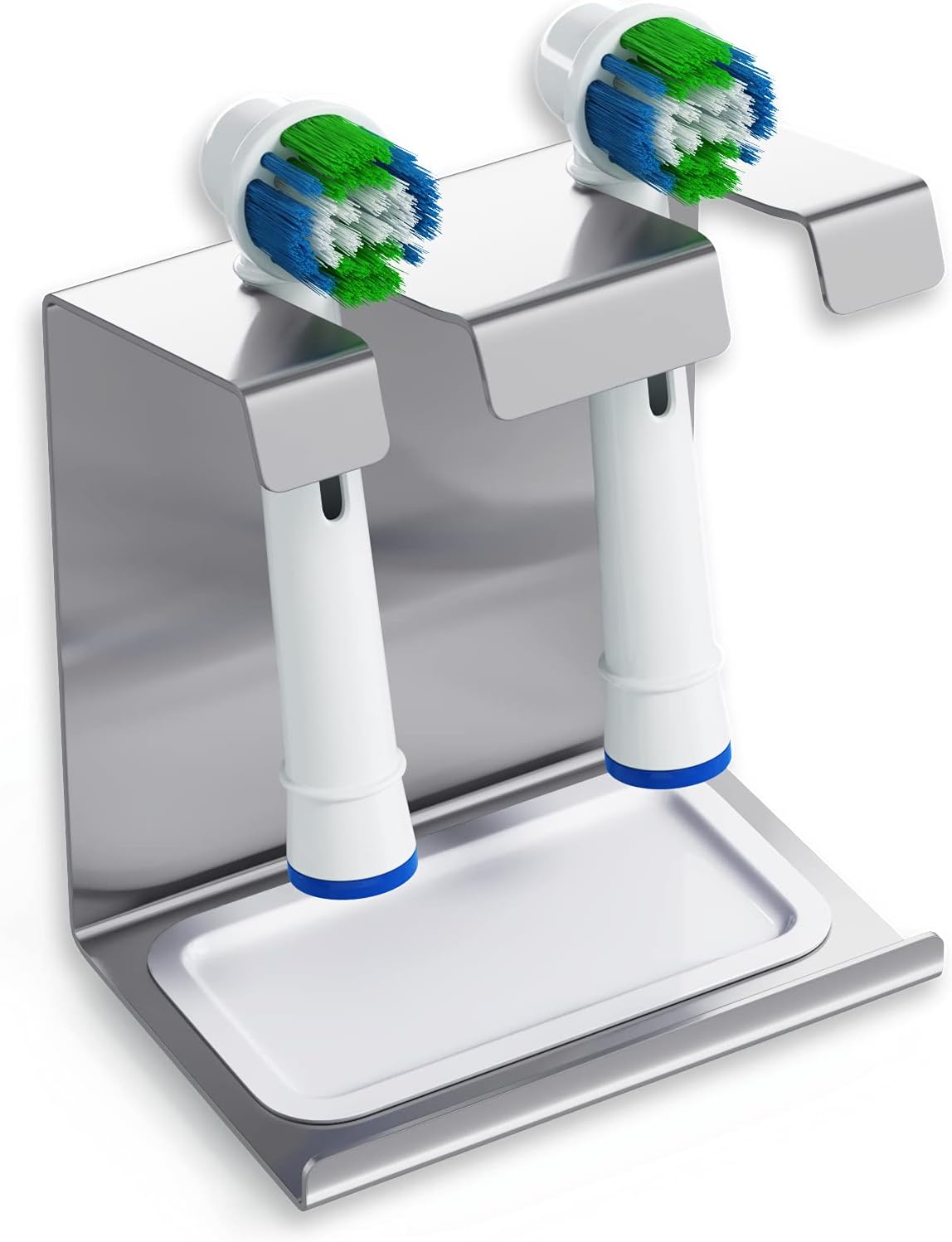 Premium Edelstahl Halter für 2 Aufsteckbürsten – kompatibel mit Oral-B®, Philips Sonicare® & weiteren