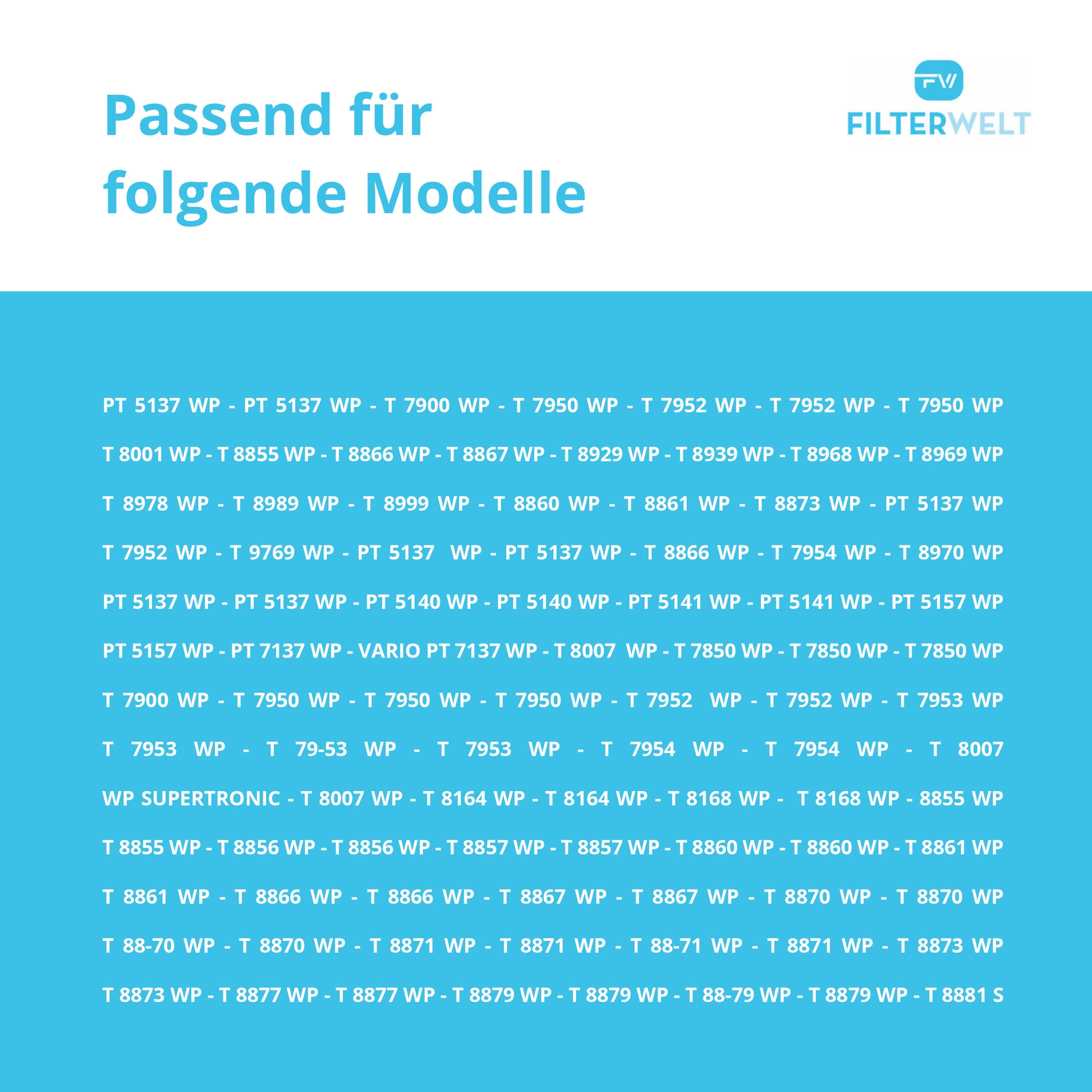 💡 Diese vollständige Kompatibilitätsliste deckt alle bekannten Miele‑Trockner mit Sockelfilter 9499230 ab. Achten Sie bitte auf das Typschild Ihres Geräts – entscheidend ist die Grundnummer (z. B. T8866WP), nicht der regionale Zusatz.