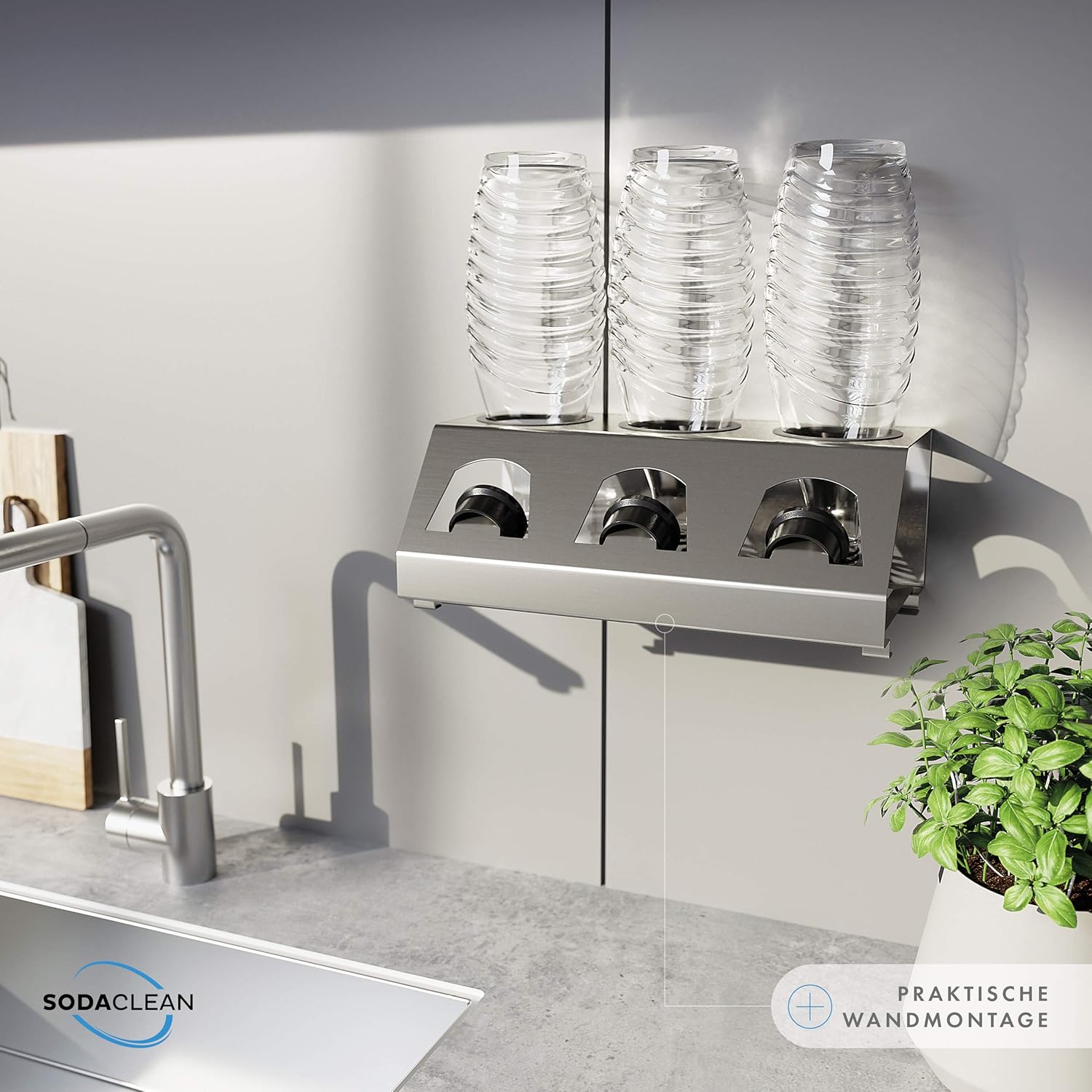 Sodaclean Flaschenhalter 3er mit Abtropfwanne – kompatibel mit SodaStream Duo®, Crystal® & Easy Fuse®