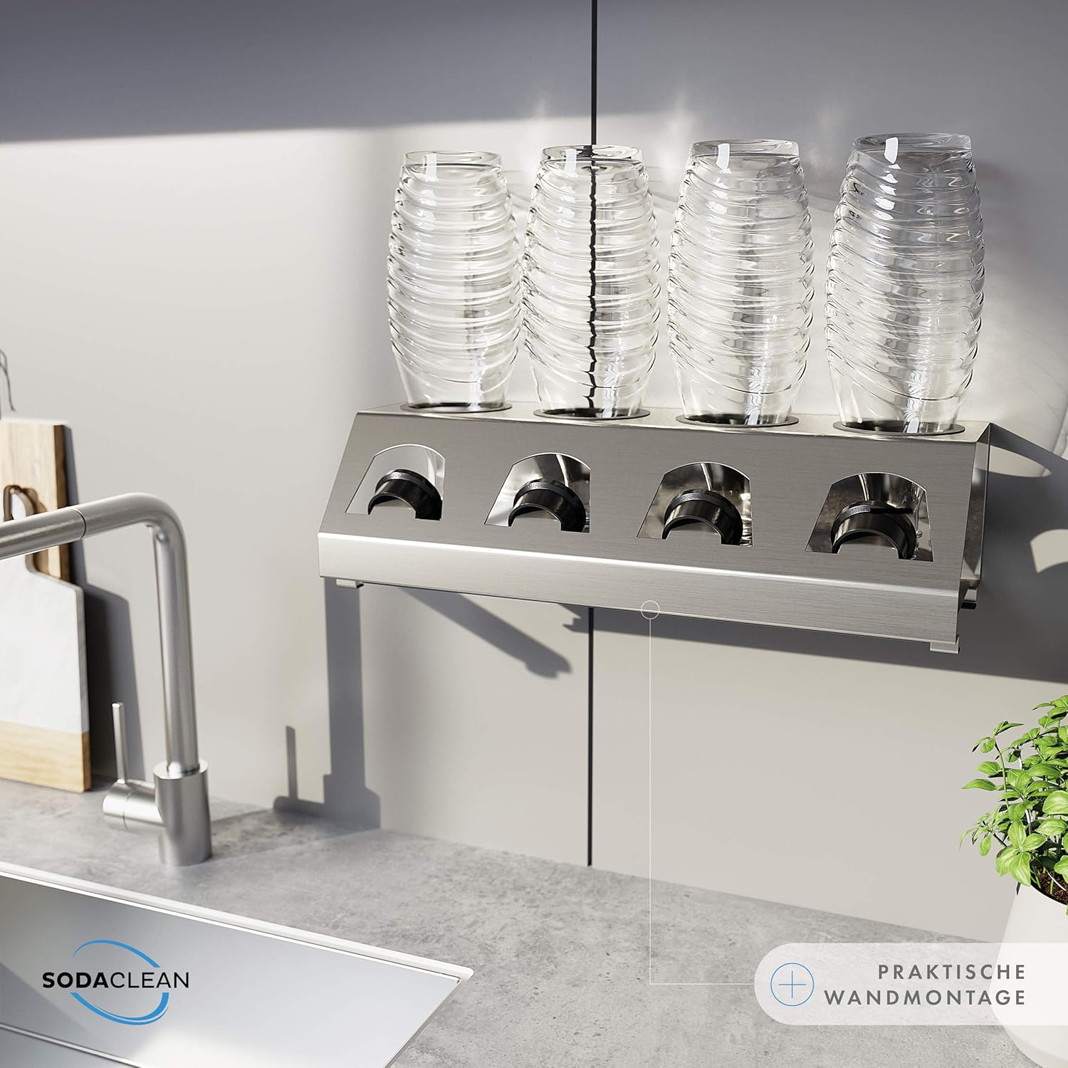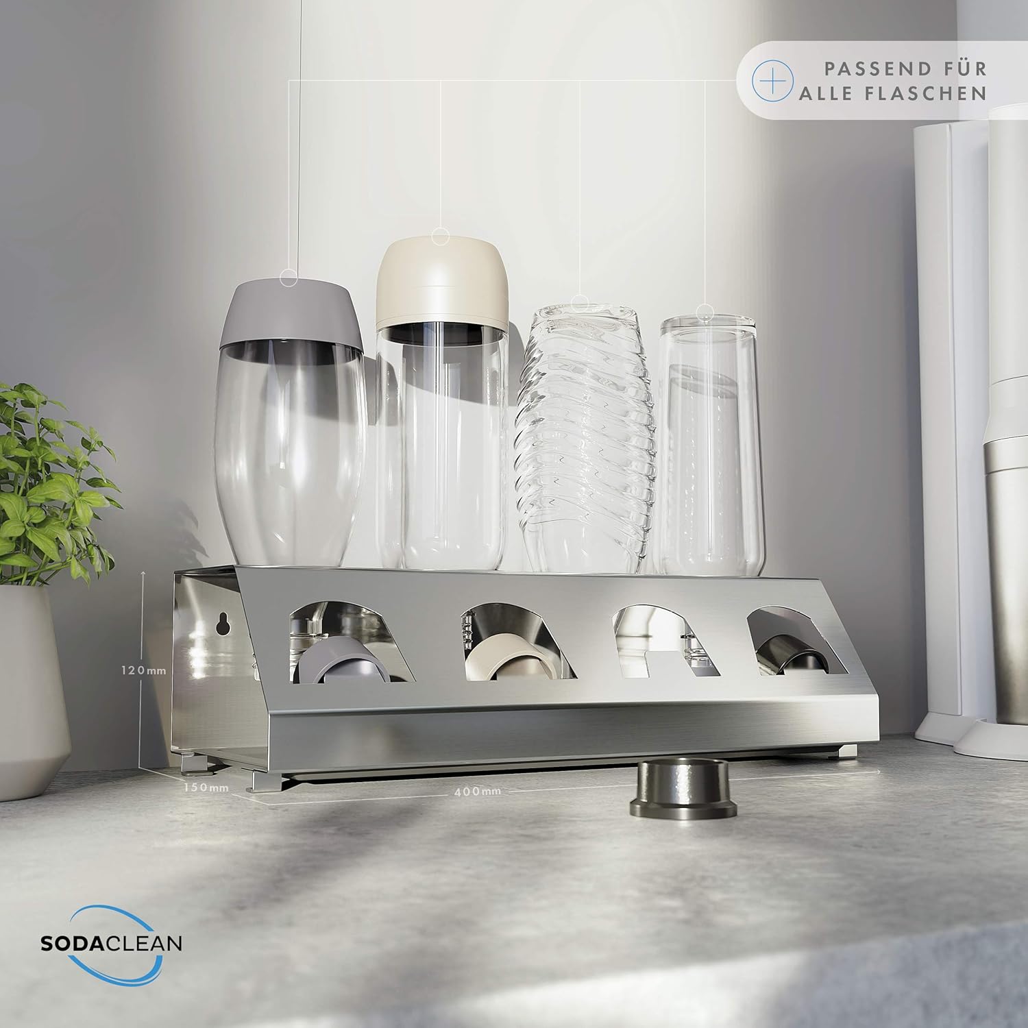 Sodaclean Flaschenhalter 4er mit Abtropfwanne – kompatibel mit SodaStream Duo®, Crystal® & Easy Fuse®